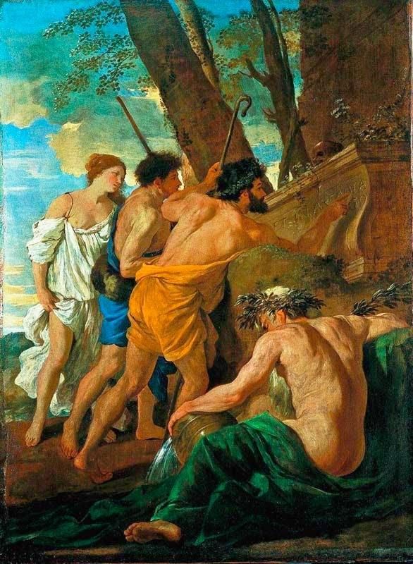 Την ίδια περίοδο ο γάλλος ζωγράφος Nicolas Poussin (1594-1665) δημιουργεί με τη σειρά του δύο πίνακες που τους ονομάζει «Οι βοσκοί της Αρκαδίας». Ο πρώτος χρονολογείται το 1627 και ο δεύτερος γύρω στα 1637 (την εποχή δηλαδή που ο ζωγράφος βρίσκονταν στη Ρώμη). Ένα ερωτευμένο ζευγάρι ανακαλύπτει τάφο βοσκού στην Αρκαδία και ακούει έναν άλλο βοσκό που διαβάζει την επιγραφή «Et in Arcadia ego» χωρίς ρήμα.