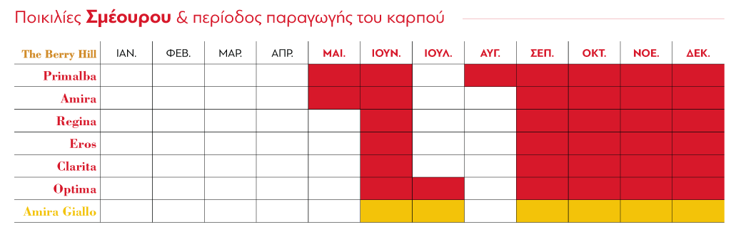 Καρπός κωνικός μεσαίου-μεγάλου μεγέθους, πρώιμης περιόδου συλλογής με έντονο κόκκινο χρώμα και γλυκιά γεύση.